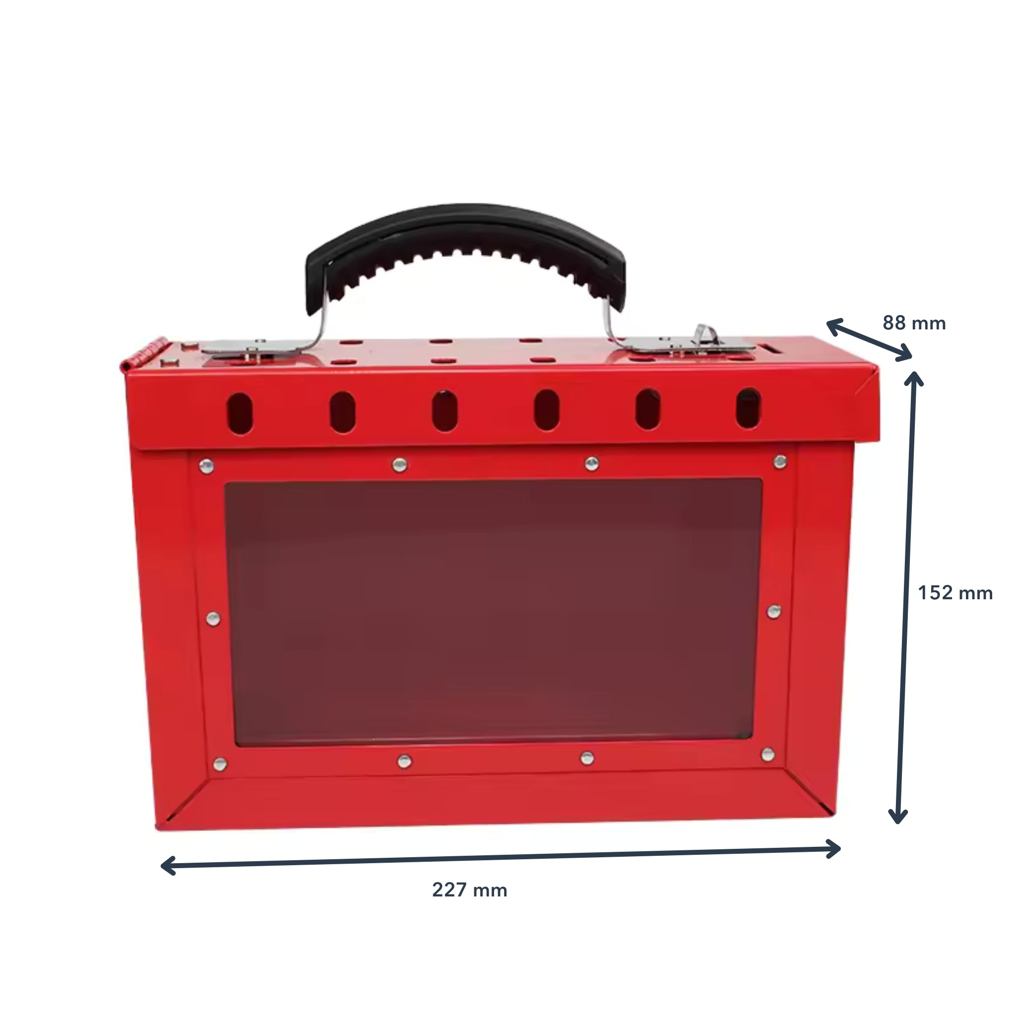 Steel plated industrially styled LOTO lockbox, OSHA compliant. Perfect for complex jobs involving multiple lockout points and personnel. Only when all personnel locks are removed from the lock box can it be opened and the system de-isolated, guaranteeing a safe work system approach.