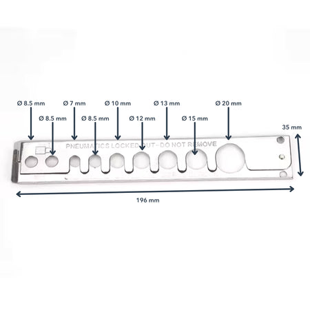Made from corrosion resistant 304 stainless steel, this lockout prevents pneumatic fitting from being connected to pressurized air source.